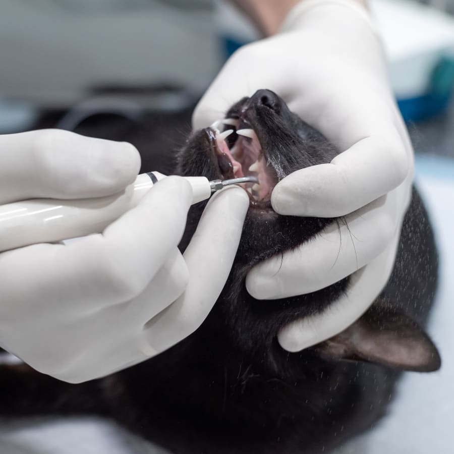 At home, you should brush your pet's teeth on a regular basis and give them dental chew toys. These will help eliminate plaque.